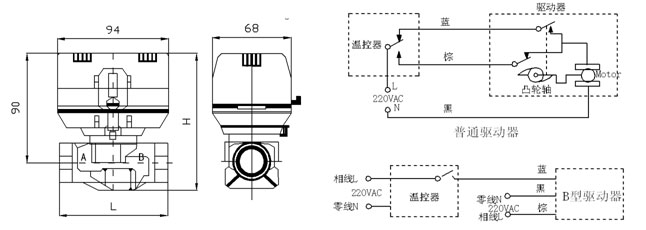 5、B型驅(qū)動器內(nèi)置繼電器,一條線控制,可配三速開關(guān),可實現(xiàn)多閥并聯(lián)。