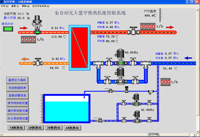 另外,還可根據(jù)設(shè)定的時(shí)間段自動(dòng)調(diào)節(jié)二次網(wǎng)的出口溫度設(shè)定值,達(dá)到自動(dòng)節(jié)能的目的。