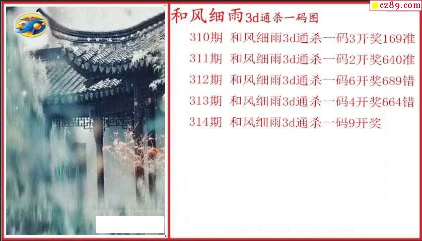 25年314期3d 和风细雨通杀一码图