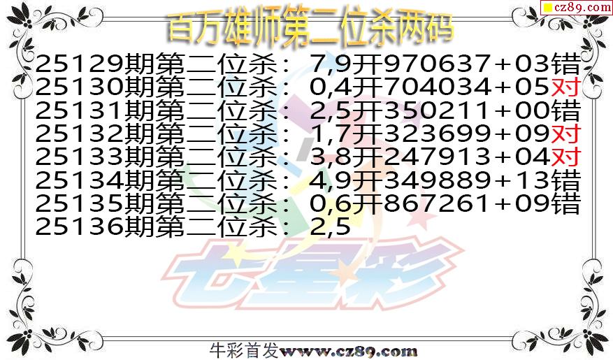 七星彩2025136期百万雄师第二位杀两码图谜